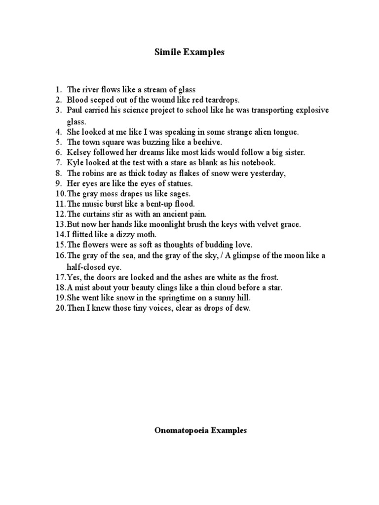 Printable Simile Examples