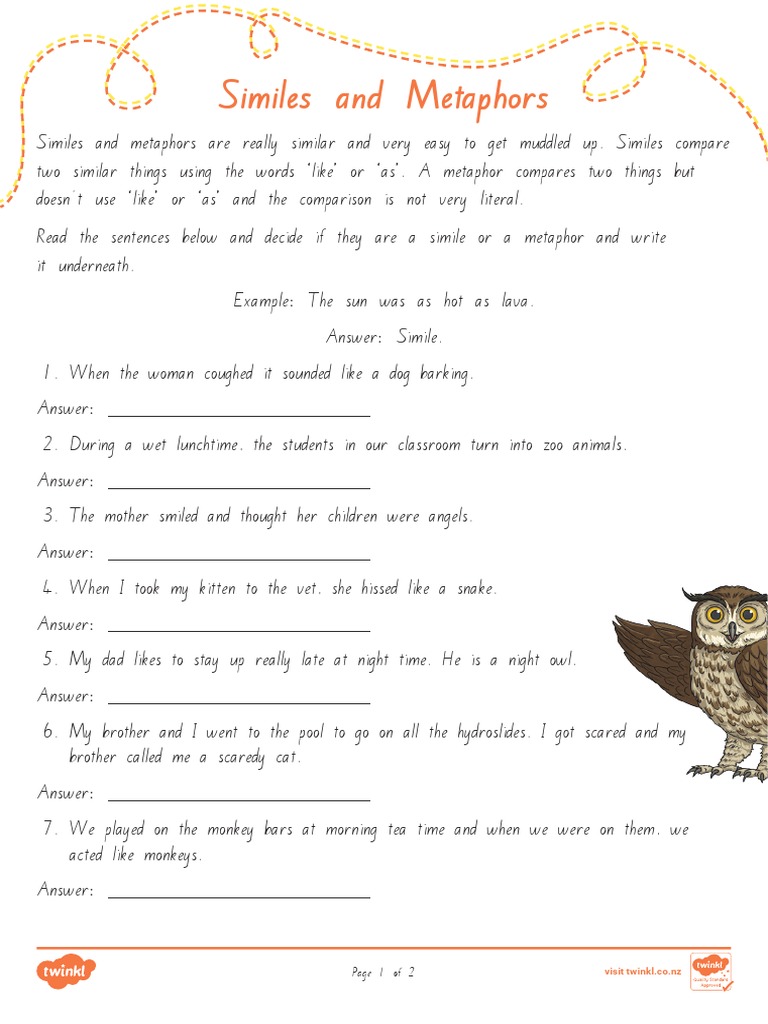 Simile Worksheets with Answers | Similes and metaphors, Simile ...