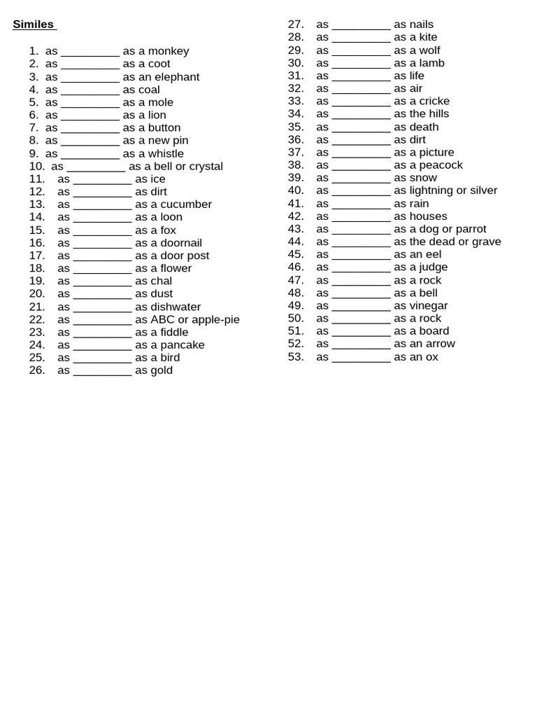 Simile worksheets – Artofit