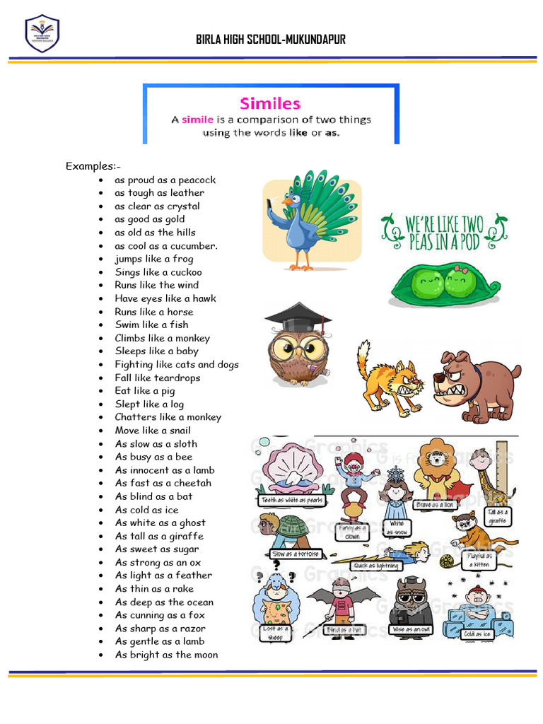 Similes, Free PDF Download - Learn Bright