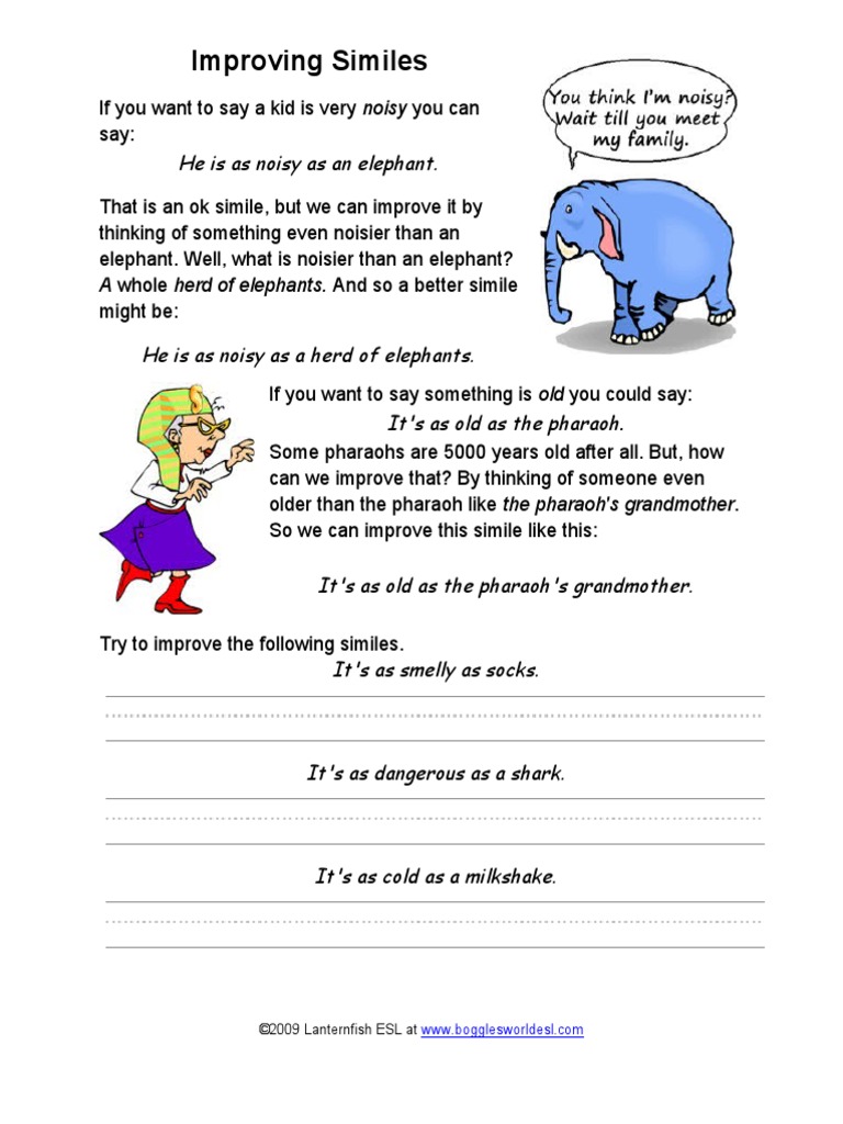 similes examples and worksheets FREE www.worksheetsenglish.com ...