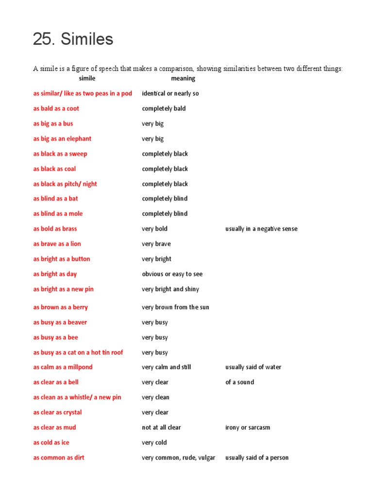A List of Common English Similes | PDF | Nature