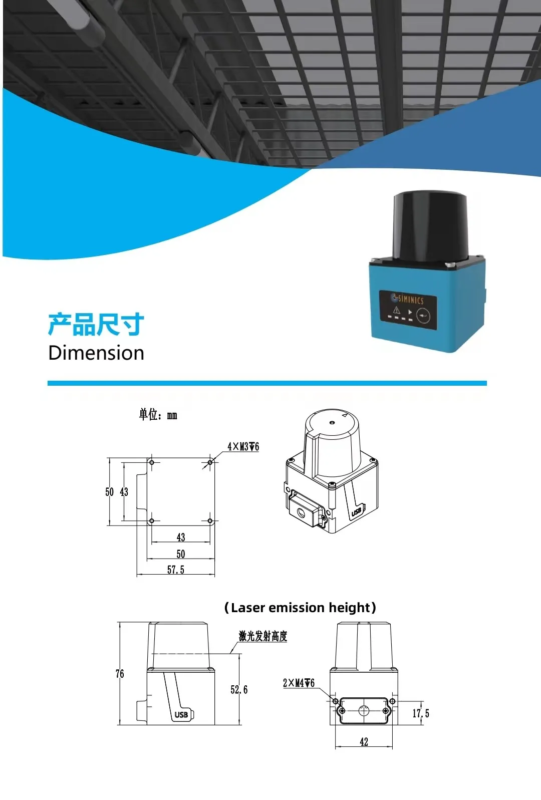 Siminics Aries 5M 2D 270° TOF Obstacle Avoidance LiDAR SIMO-LS-05DN/DP ...