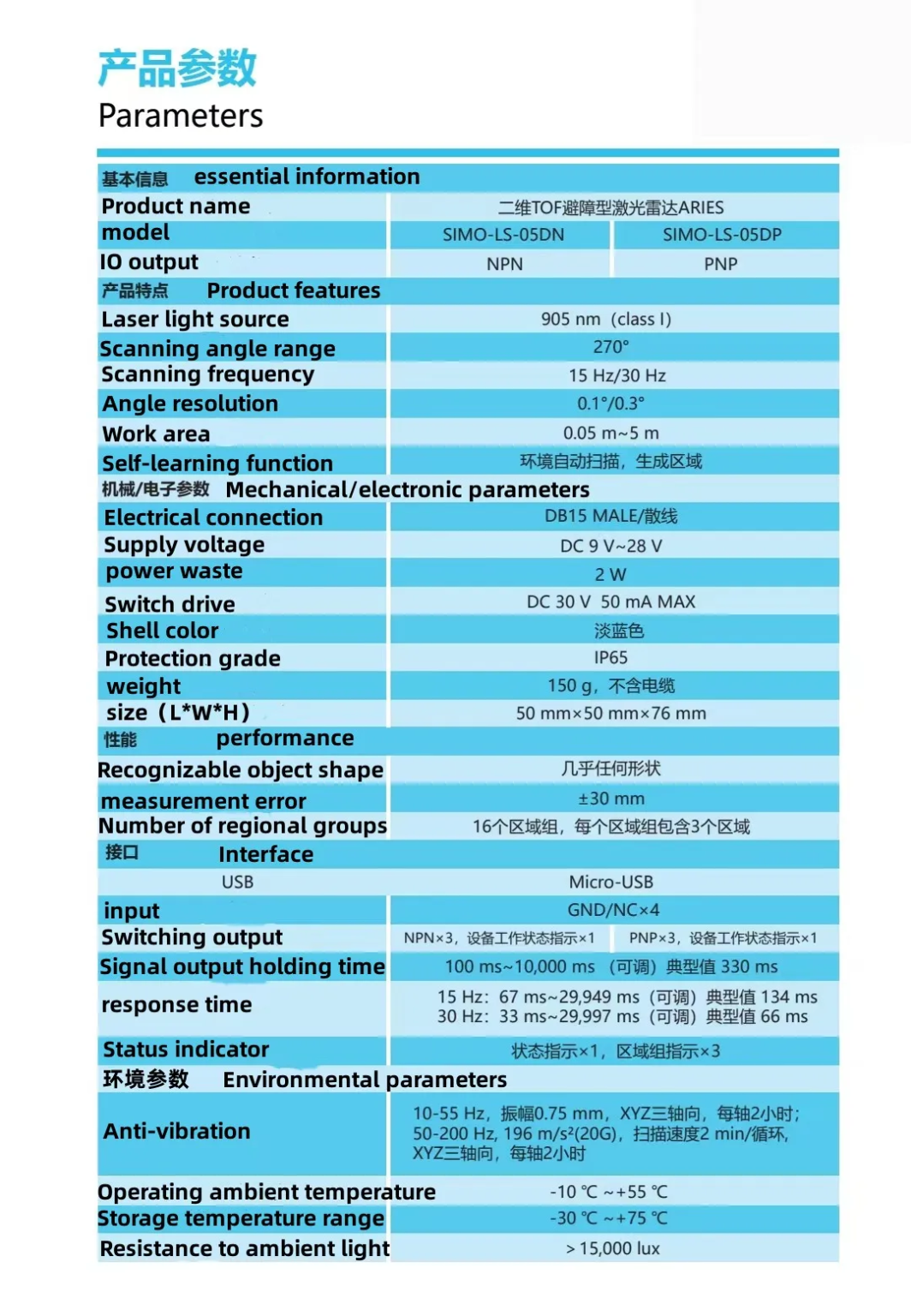 星秒科技(SIMINICS)星秒科技ARIES5米20米 二维TOF避障型激光雷达IO信号NPN PNP雷达 SIMO-LS-05DP PNP ...