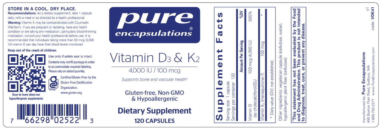 Vitamin D3&K2 - Pure Encapsulations 120 caps