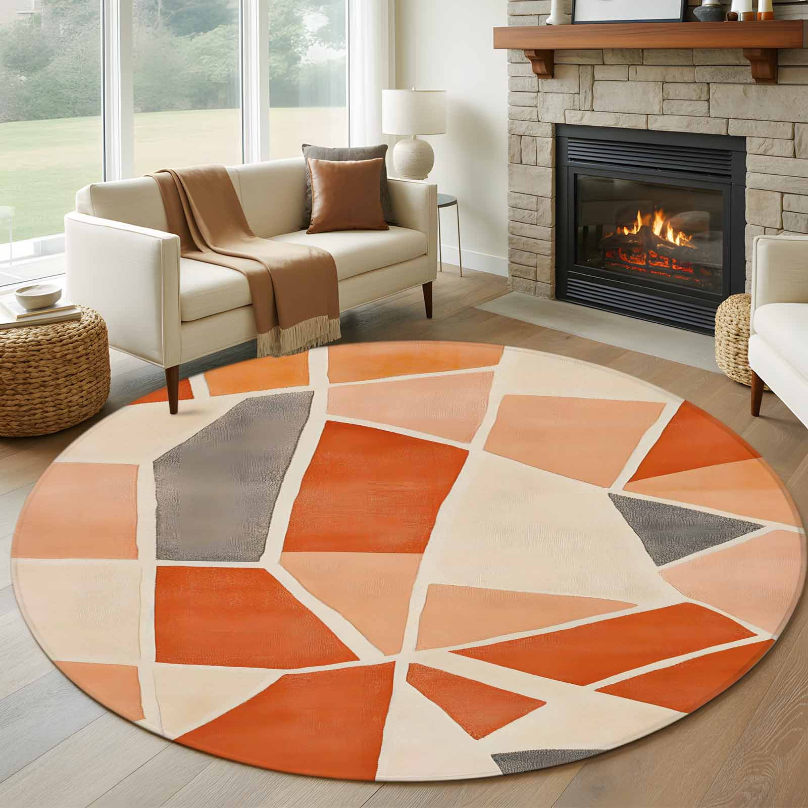 Abstract Block 5FT Round Area Rugs for Living Room Orange Gray Block ...