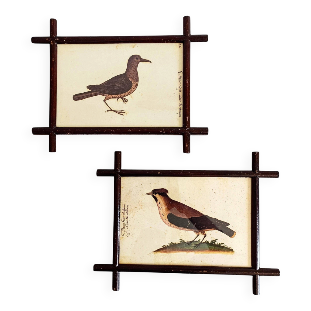 Paire de cadres en art populaire français du 19ème siècle avec des fac ...