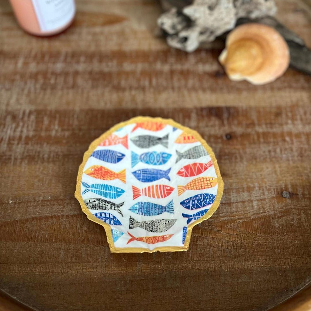 SM Tribal Fish Seashell Statement Dish - Etsy