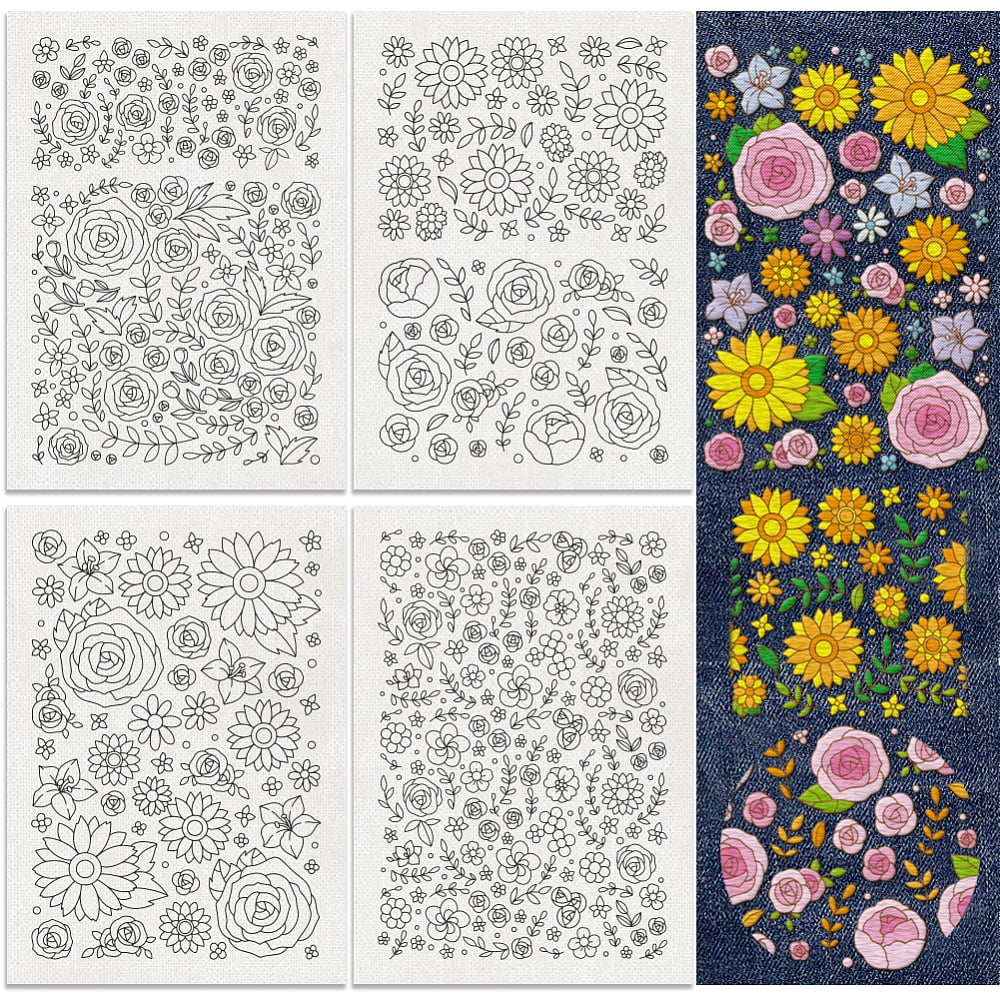 4 Sheets Cloth Stick and Stitch Embroidery Patterns Non-woven Fabrics ...