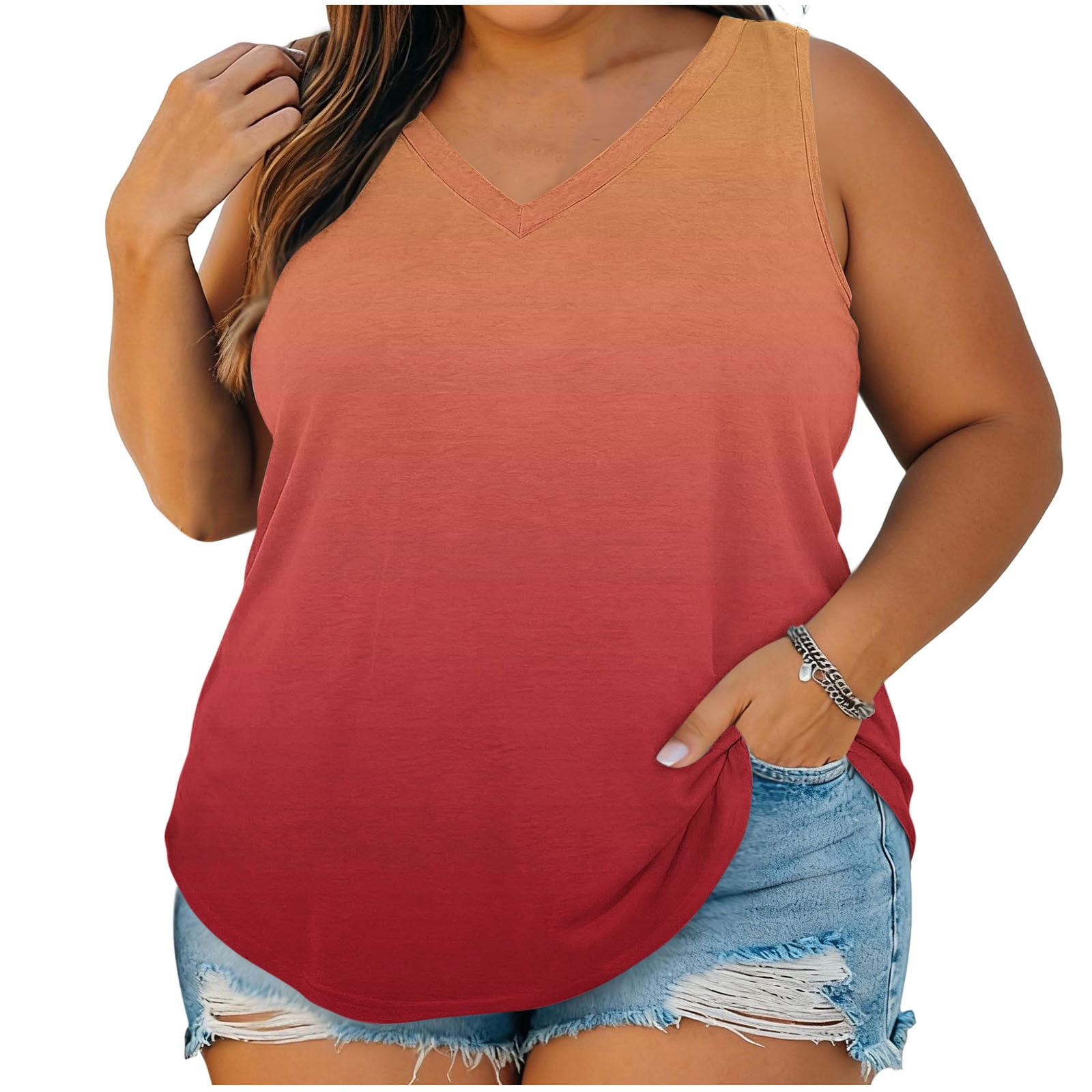 asjyhkr Women Plus Size Tank Tops Summer Casual Gradient Color Tops ...