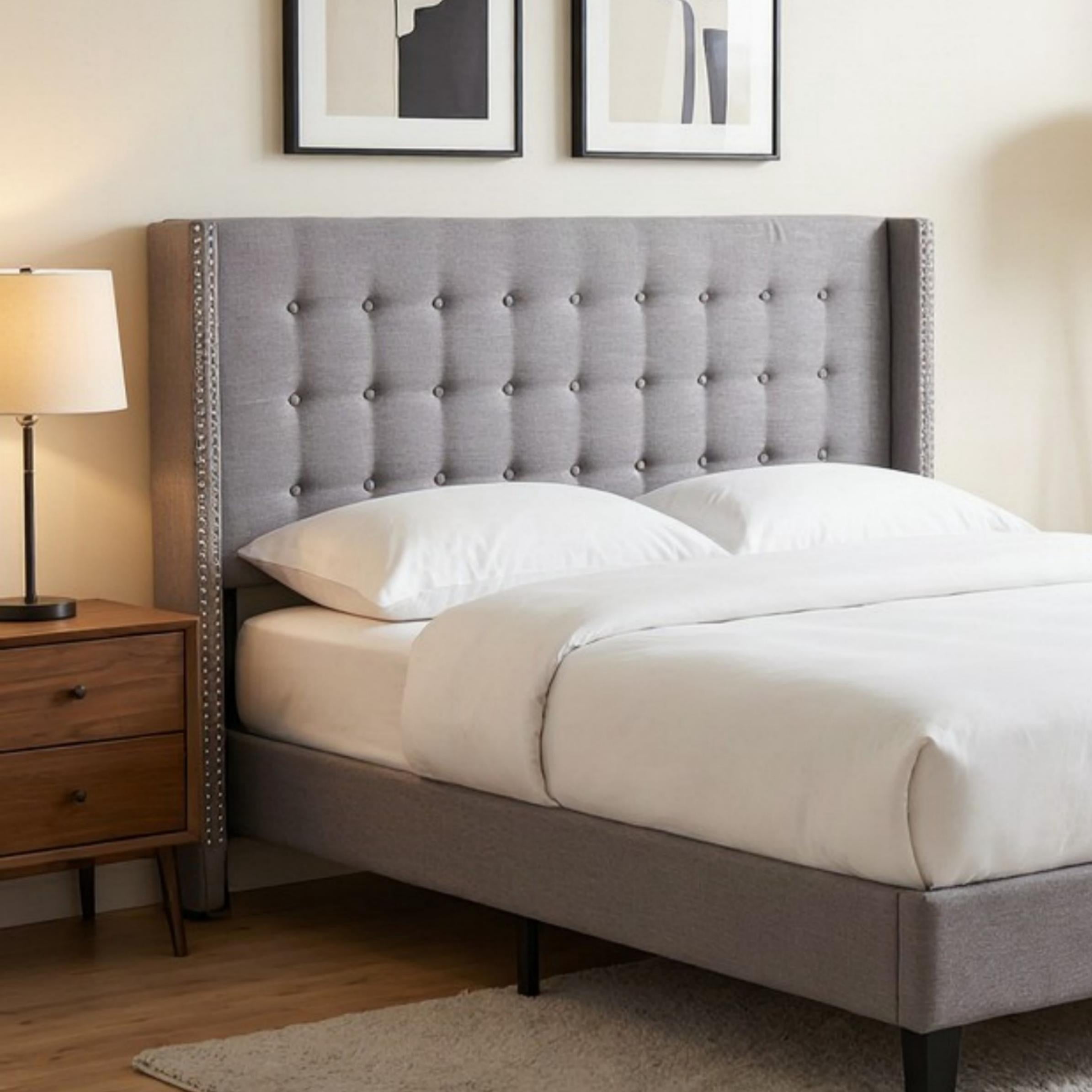 Amerlife Solid Wood King Size Bed Frame, 57" Tall Farmhouse Upholstered ...