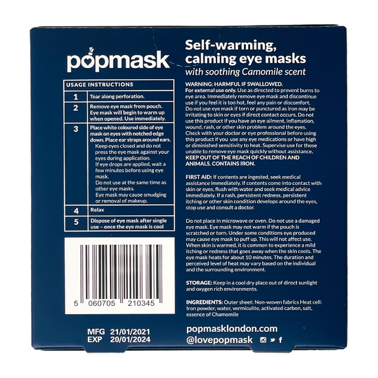 Calm Self-warming Chamomile Scented Sleep Masks – Popmask London