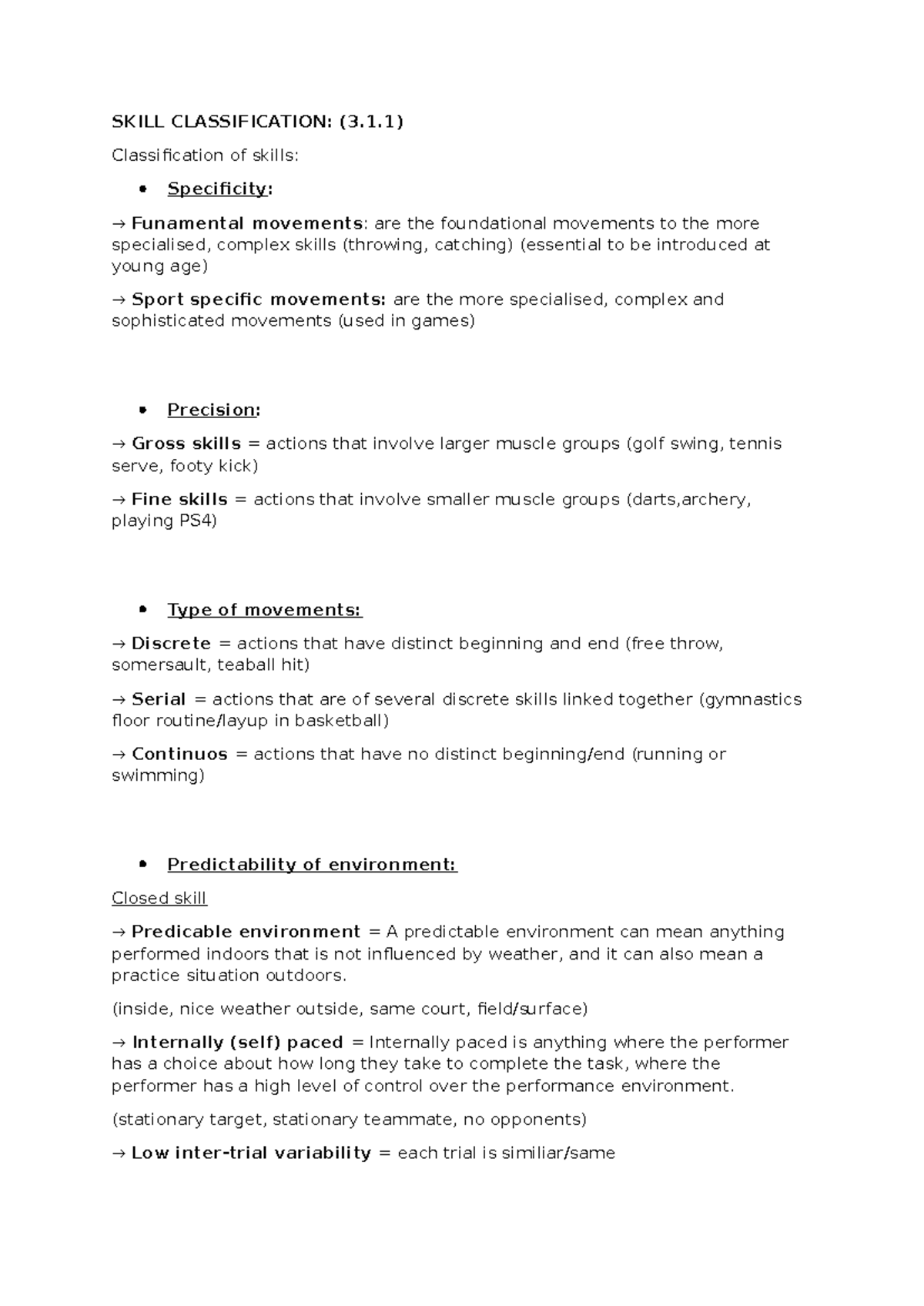 Skill Classification: Understanding Motor Skills and Development (3.1.1 ...