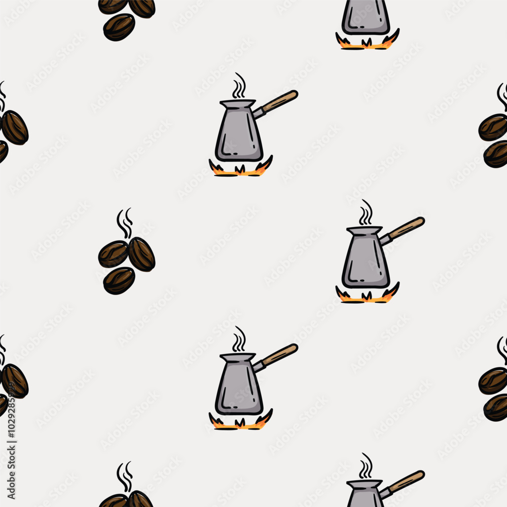 Simple seamless pattern with coffee beans and coffee pot for brewing ...