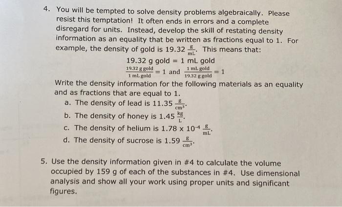 Solved 4. You will be tempted to solve density problems | Chegg.com