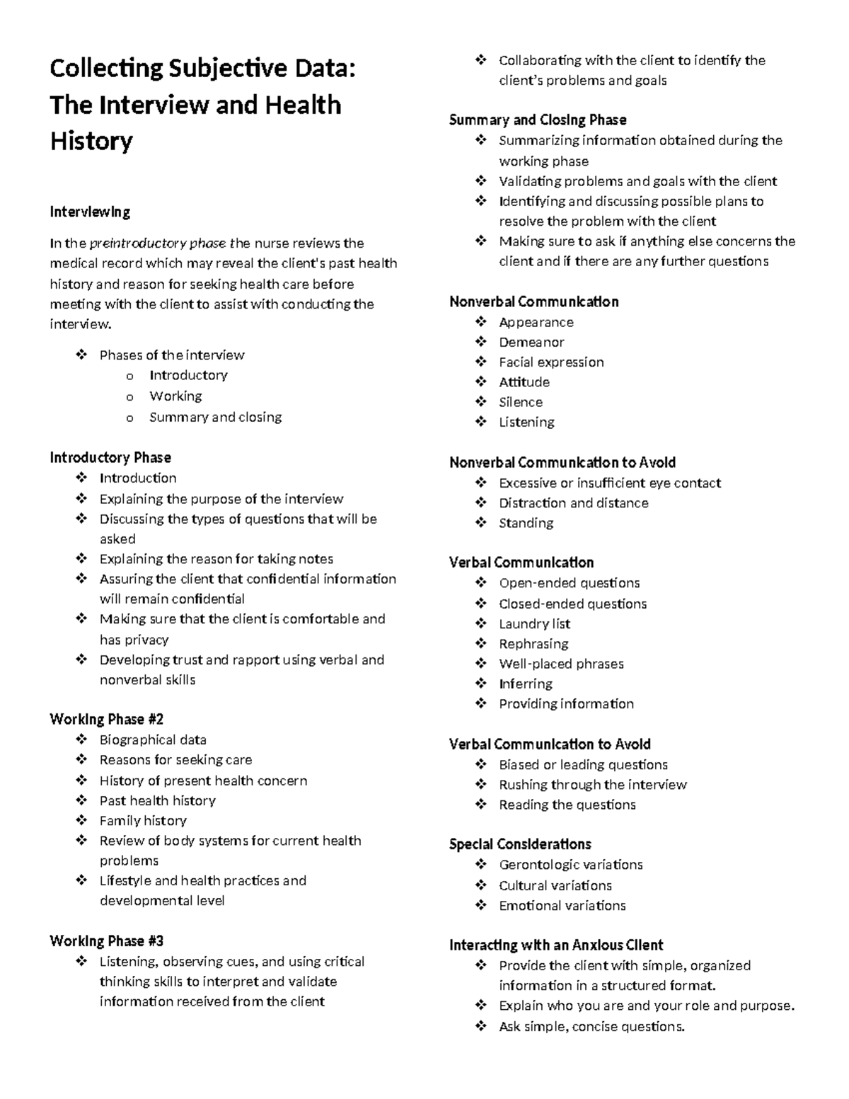 HA-2 - Documenting Subjective Data: Interview Techniques and Health ...