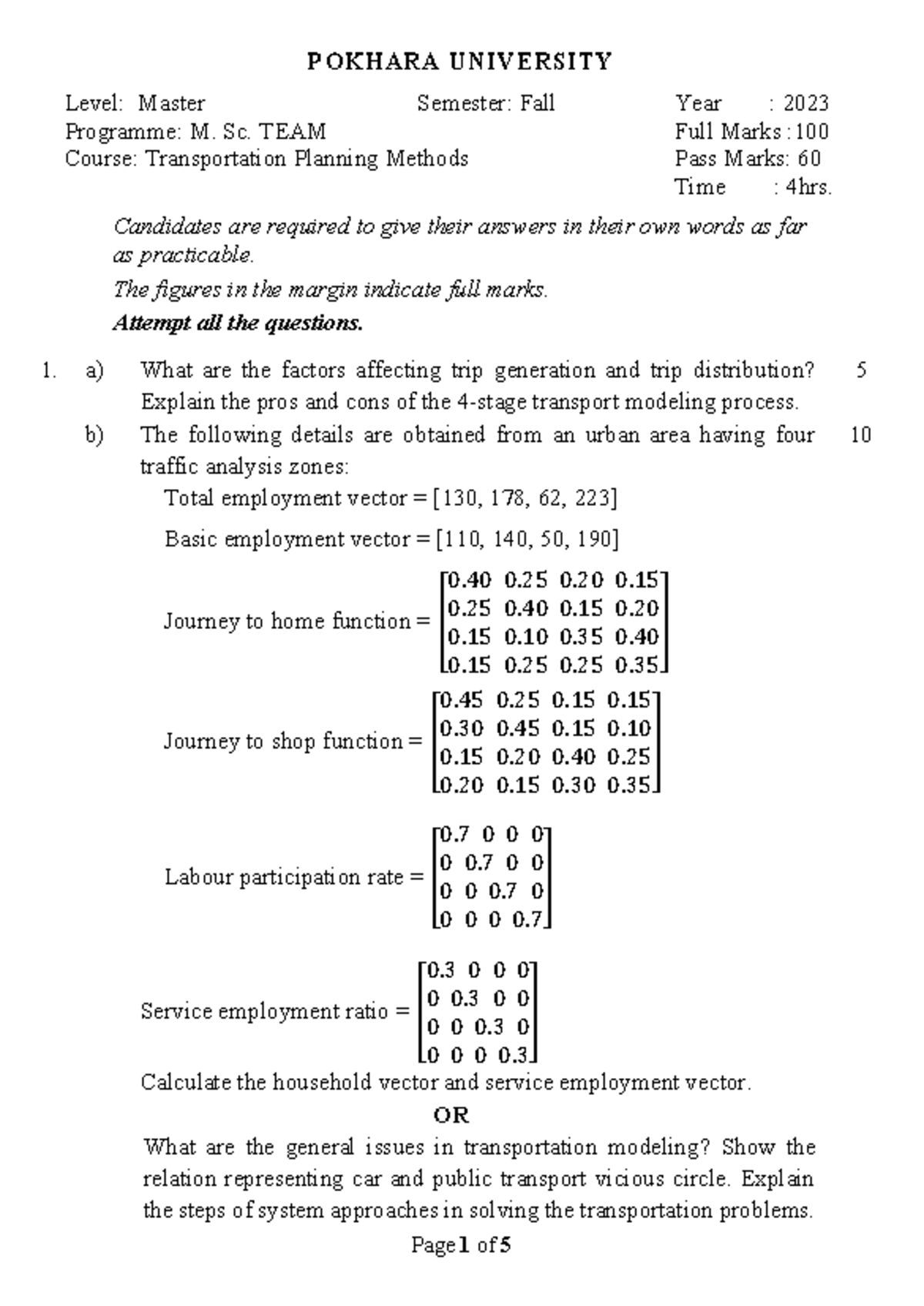 TPM 23 FALL - Transportation Planning Methods Exam Questions - Studocu
