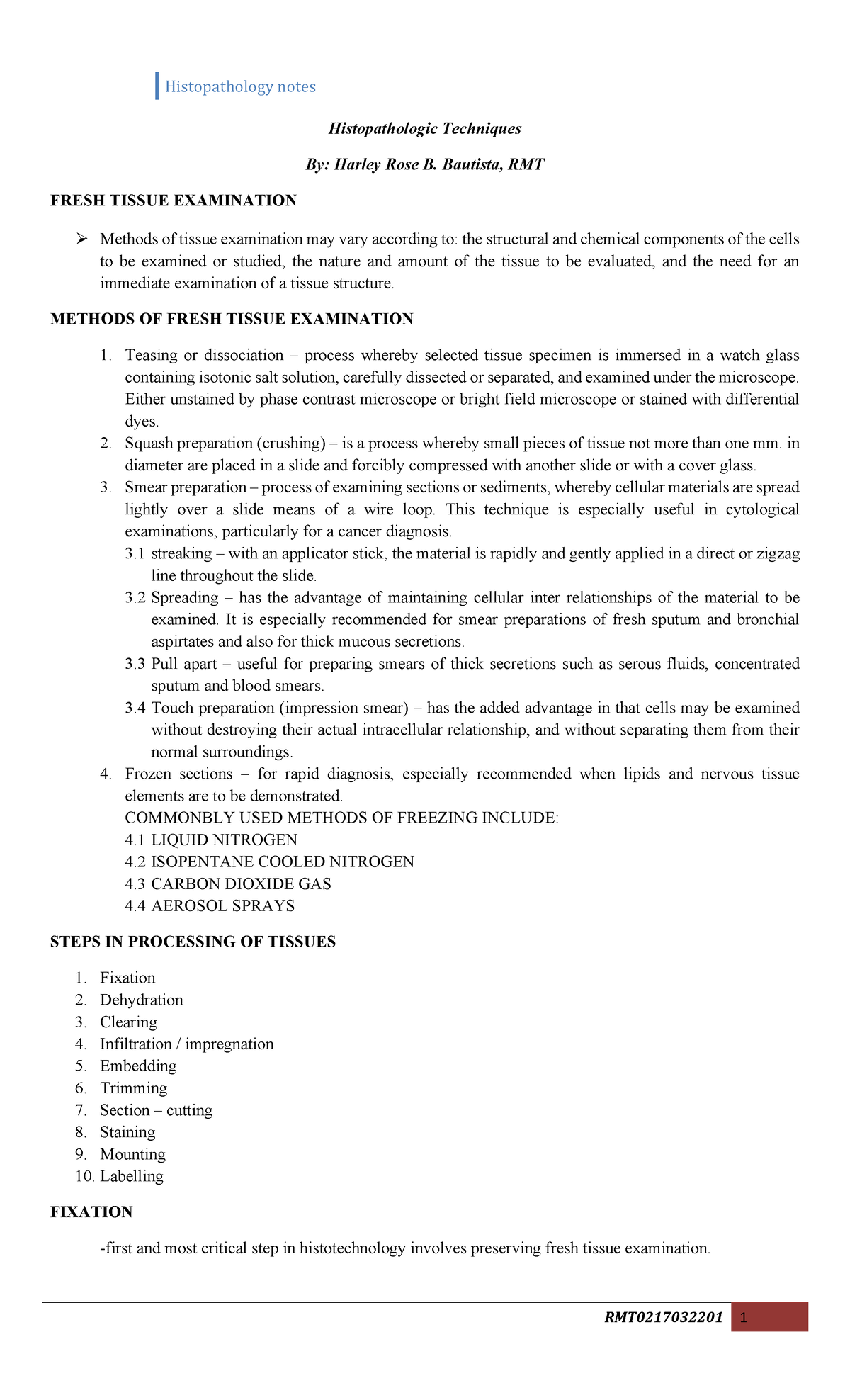 RMT0217032201 Histopathology Notes: Fresh Tissue Examination Techniques ...
