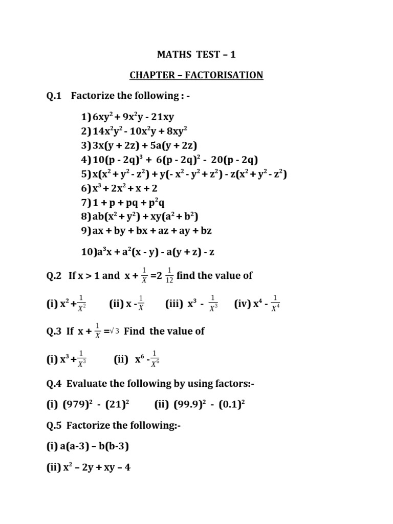Factorization Practice: A Math Test with Questions on Factorizing ...