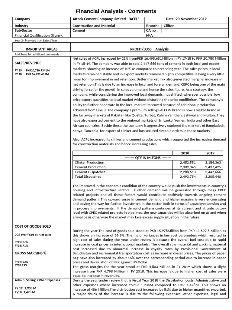 Comments Sheet - Financial Analysis-2019 | PDF | Debt | Finance & Money ...