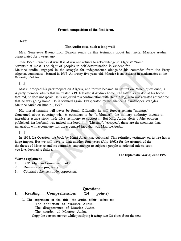 Example French Writing Pieces | Year 12 VCE - French | Thinkswap