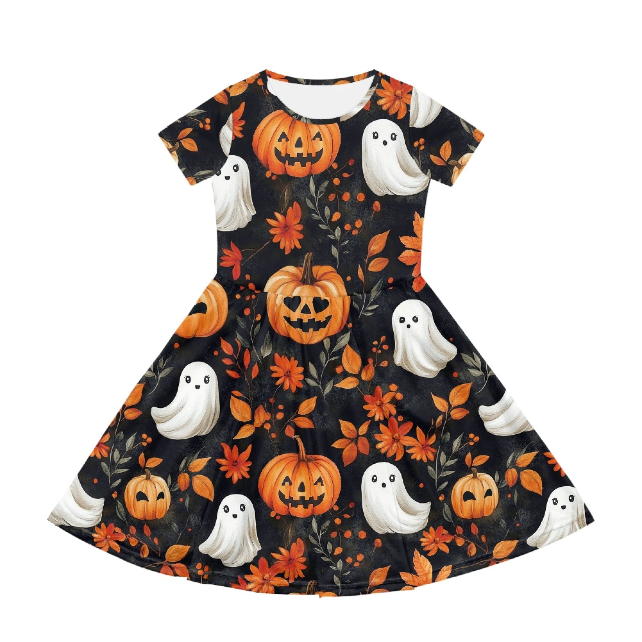 CHAQLIN Ghost Pumpkin Pattern Girls Casual Dress Soft Fabric 2-14 Years ...