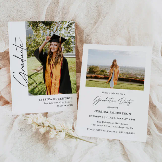 Simple Graduation Modern Stylish Grad Party Photo Invitation | Zazzle