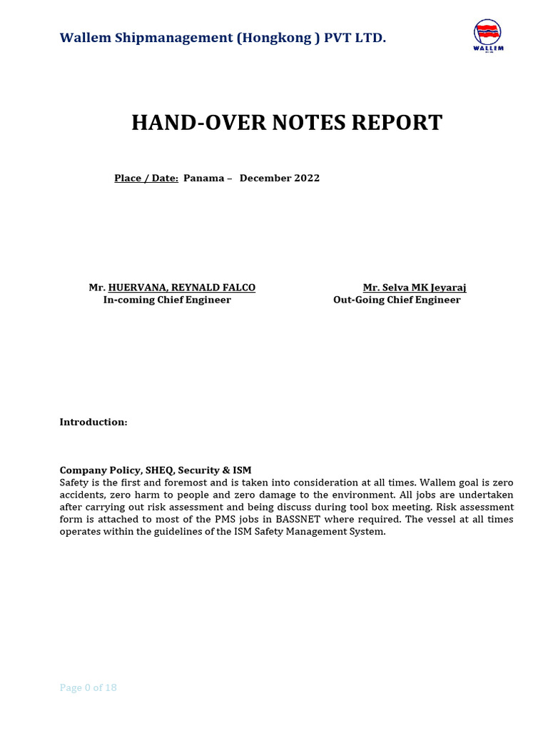 Hand-Over Note | PDF
