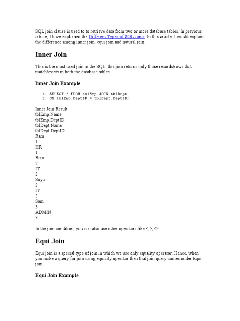 SQL Inner Join Explained with Example | PDF