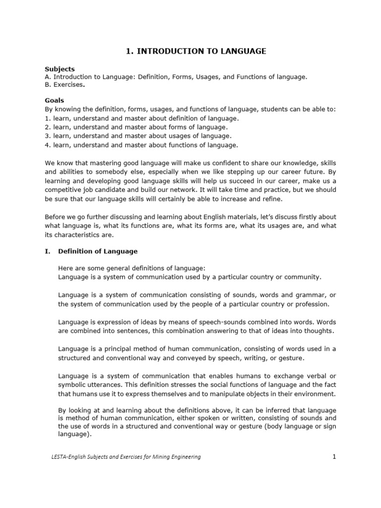 1. Introduction to Language | PDF