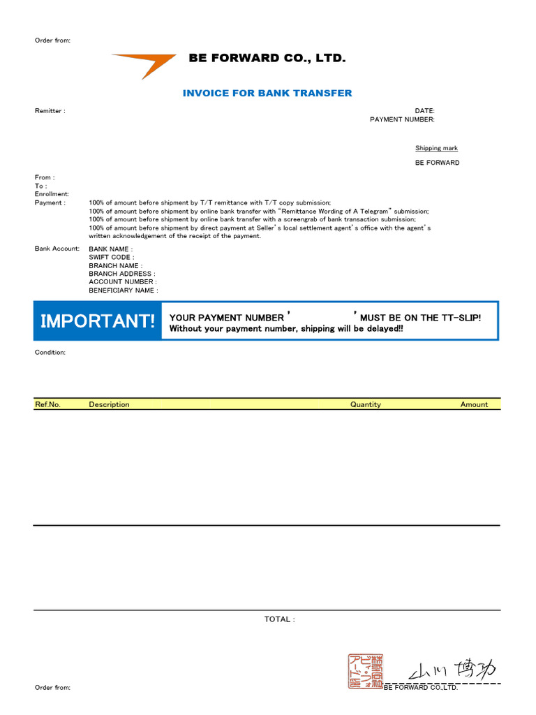 Bank Transfer Invoice Template