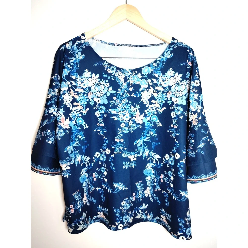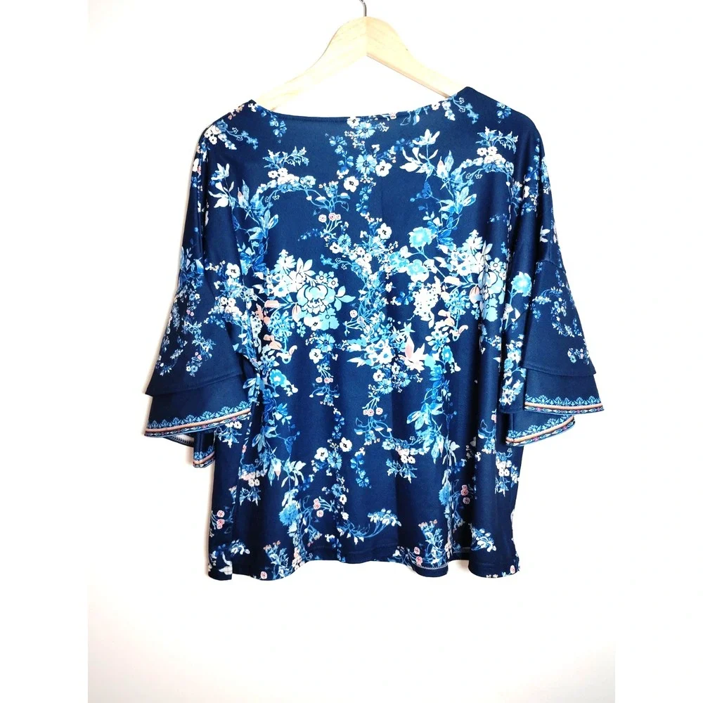 The Unbranded Brand | Tops | Women Xxl Blue Floral Tier Bell Sleeve ...