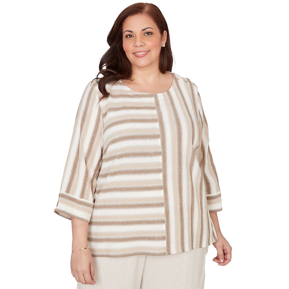 Plus Size Alfred Dunner Spliced Stripe Three Quarter Sleeve Top
