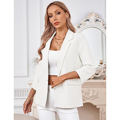 Women Long Blazer One Button Lapel 3/4 Sleeve Business Casual Jacket