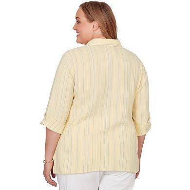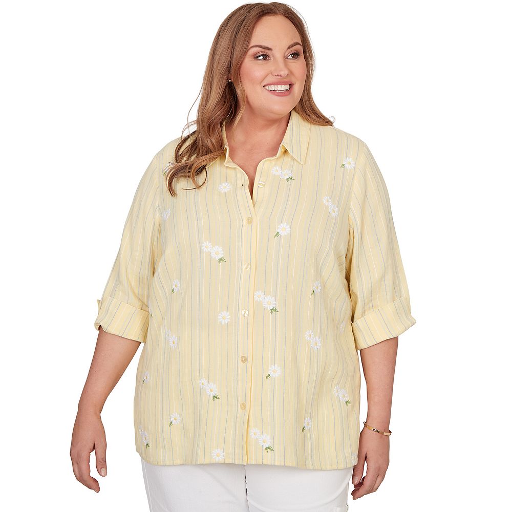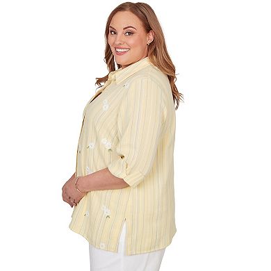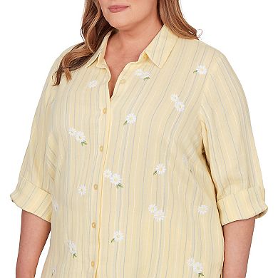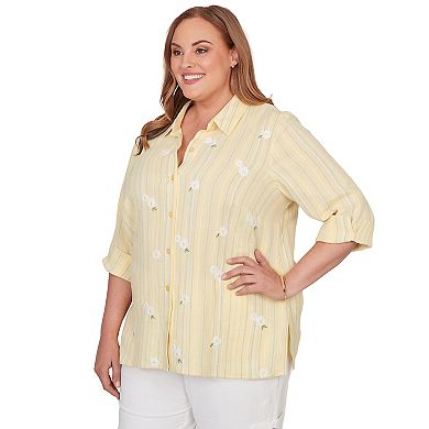 Plus Size Alfred Dunner Embroidered Daisy Stripes Button Front Top