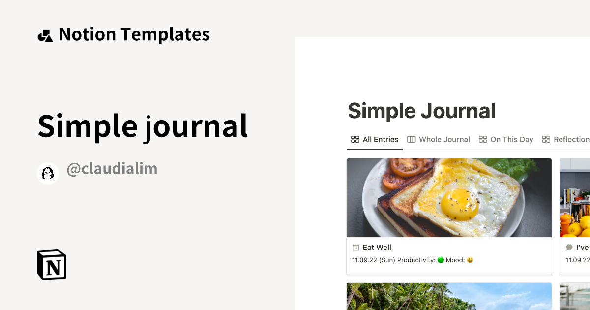 Simple journal Template by Claudia Lim | Notion Marketplace