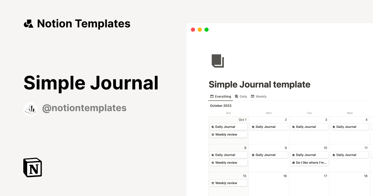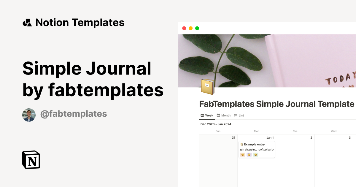 Simple Journal by fabtemplates Template by Fabio | Notion Marketplace