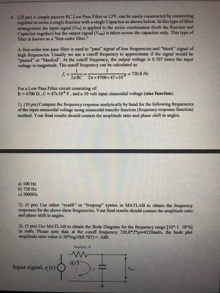 Solved (20 pts) A simple passive RC Low Pass Filter or LPF, | Chegg.com