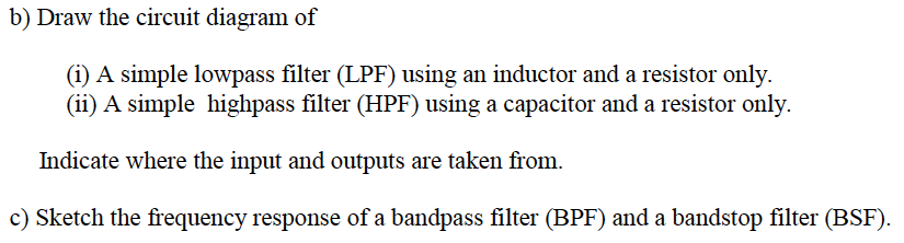 Solved Draw the circuit diagram of (i) A simple low pass | Chegg.com