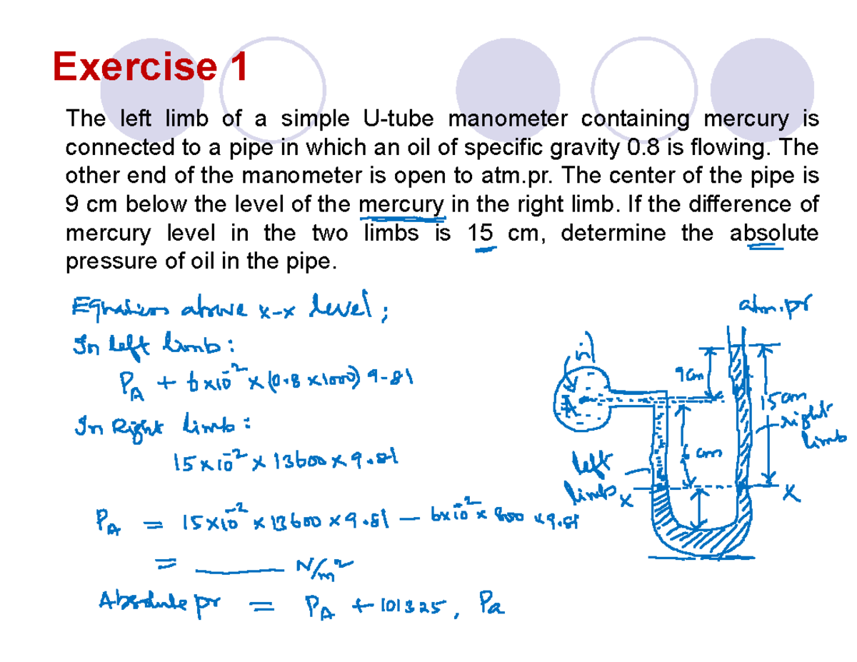 SOLUTION: Lecture 6 fluid statics manometers - Studypool