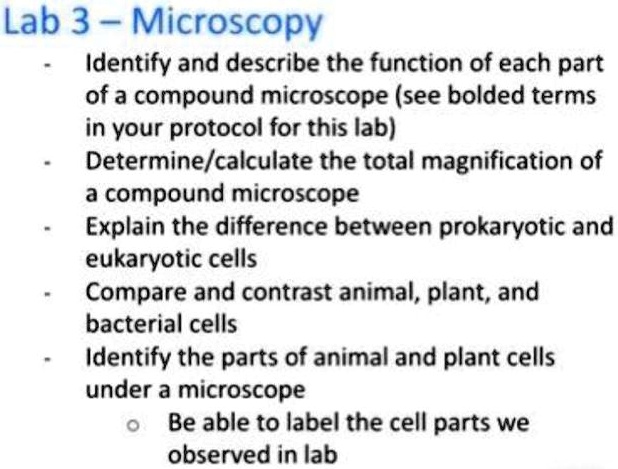 lab 3 microscopy identify and describe the function of each part of a ...