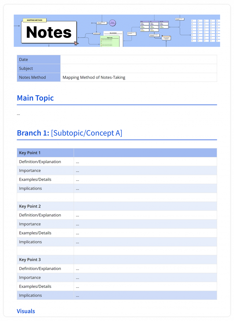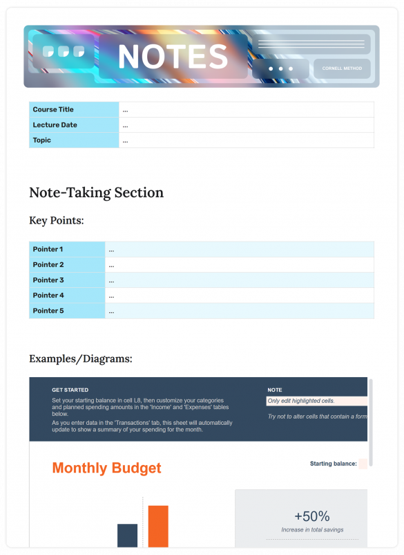 Cornell Note Taking Method Template