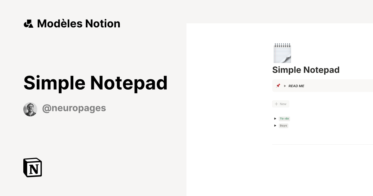 Modèle Simple Notepad | Marketplace Notion