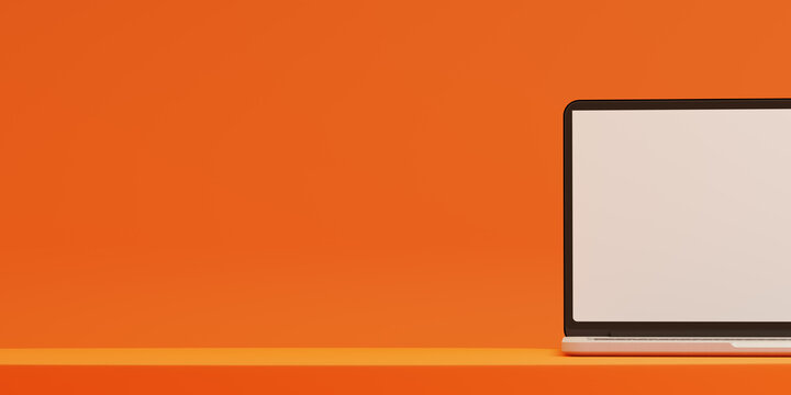 orange Laptop computer isolated on white Stock Photo - Alamy