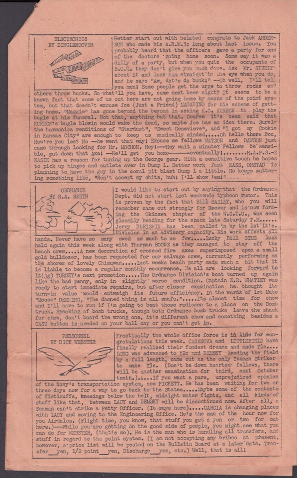 U.S. Military Newsletter Casu Comet Oct 6 1945 Published on Okinawa ...