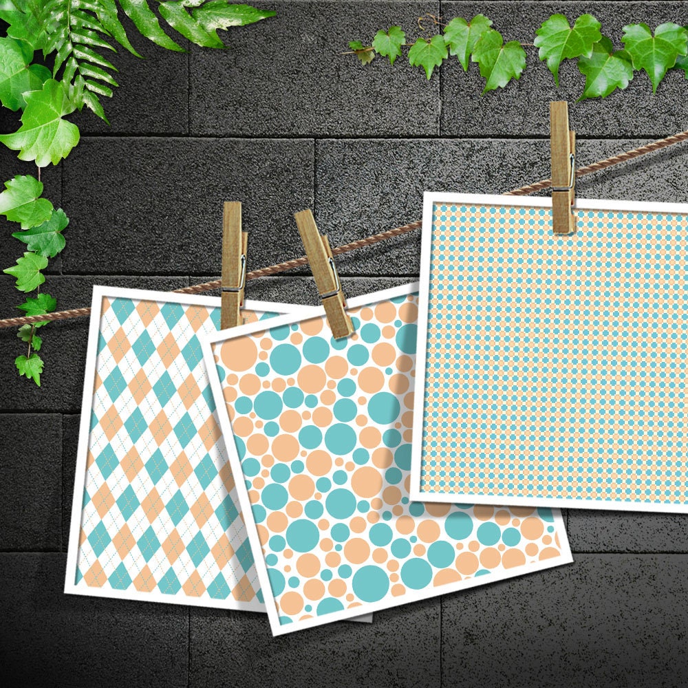 Simple Basic Pattern Teal & Peach Digital Paper, 20 Patterns, 3 Labels ...