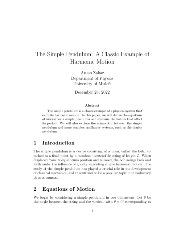 (PDF) The Simple Pendulum: A Classic Example of Harmonic Motion