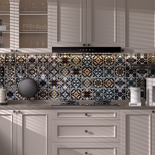 24PCS Self-Adhesive Peel and Stick Art Tile Stickers, Moroccan Vintage ...