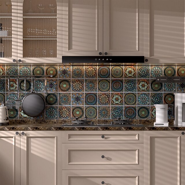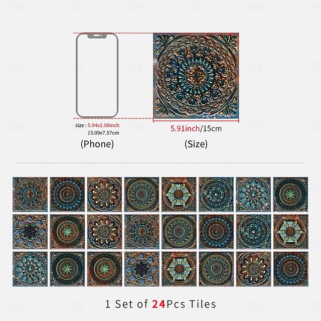 24PCS Self-Adhesive Peel and Stick Art Tile Stickers, Mandala Vintage ...