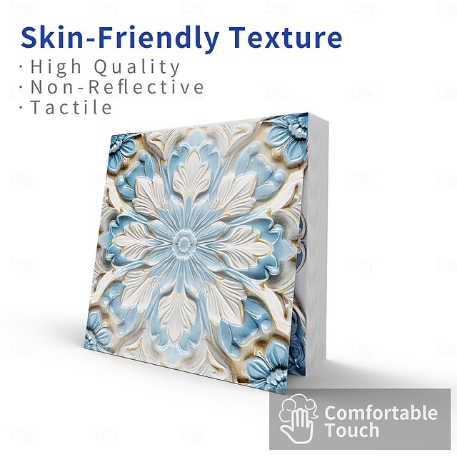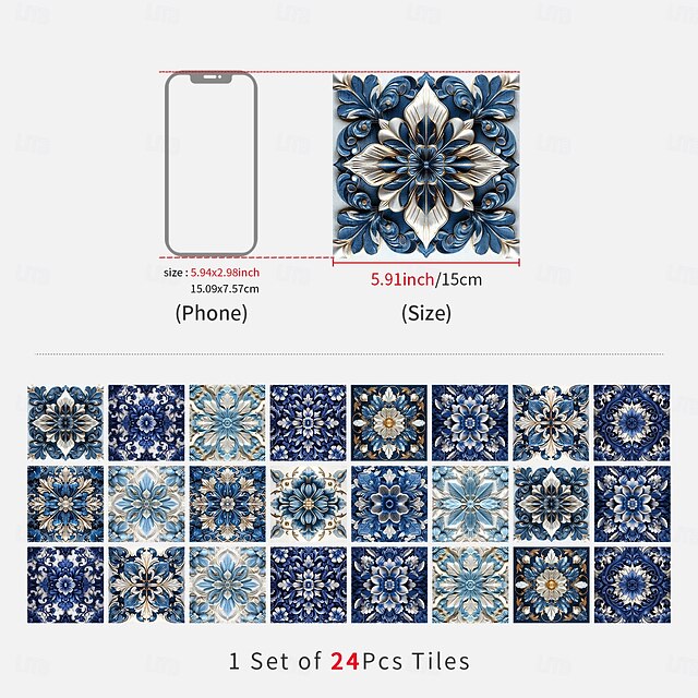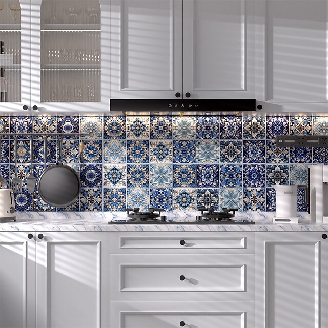 24PCS Self-Adhesive Peel and Stick Art Tile Stickers, Blue Retro Floral ...